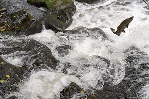 Salmon jumping in Whatcom Creek, Bellingham, WA.