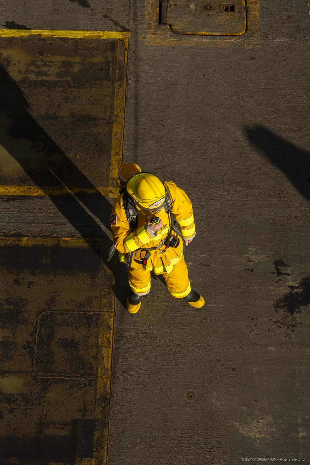 Radio work during a fire drill on the ferry.