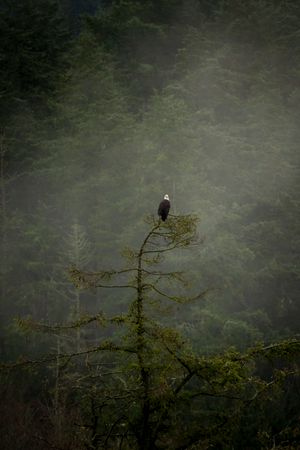 This bald eagle was sitting in this conifer just above the mouth of a creek that flows into Bellingham Bay in Bow, WA.