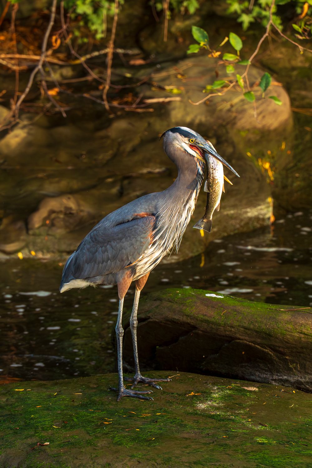 This Great Blue Heron seized the opportunity for a meal that was a mouthful.